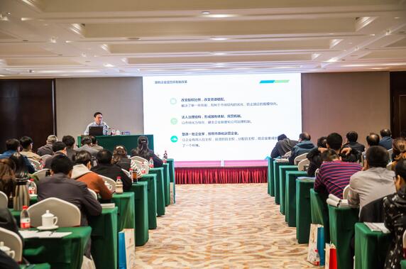 省国资委资本运营与收益管理处副处长肖永达对省属企业混合所有制改革工作情况进行了政策解读;山东产权交易中心党委副书记、总裁王利对如何发挥产权市场功能、服务国有企业混改进行了深入浅出的精彩阐述;山东产权交易中心业务总监、山东国赢资本总经理张映军分享了国有企业混改操作实务经验及重点难点操作技巧;北京大学交易成本经济学研究室主任、中国管理研究院知识研究所所长陈择华对国有企业改革的重点、难点进行了解析。