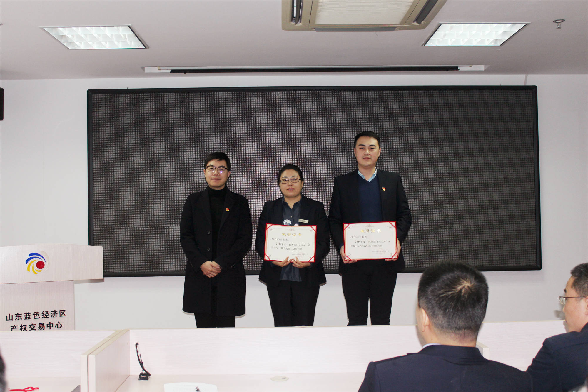会议根据民主评议和全员绩效考核结果,授予王寒娟、薄怀杰“2019年度优秀部门负责人”荣誉称号;授予来茹、范力铭、胡明“2019年度优秀员工”荣誉称号,省中心授予薄怀杰同志“优秀共产党员” 荣誉称号。总经理刘程同志号召全体员工向榜样先进学习,立足自身履职尽责,积极进取,排除万难,在新一年度的工作中继续扎实推进工作,为蓝产权的进步与发展贡献力量。